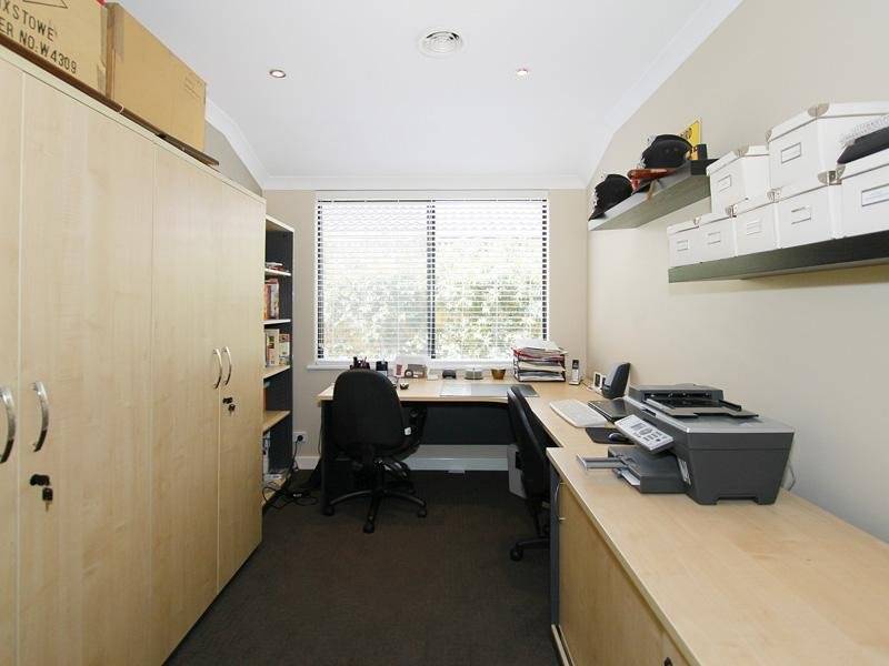 meals and games room, leads you past the enclosed theatre room with downlighters, huge master bedroom with deep W.I.R. and ensuite and study big enough to be utilised as a fifth bedroom if needed.