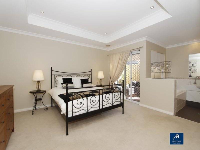 Sliding doors lead outside bedroom to parents retreat, ideal for spa.