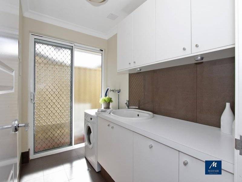 Family bathroom suite, refitted laundry with base & wall mounted cupboards.