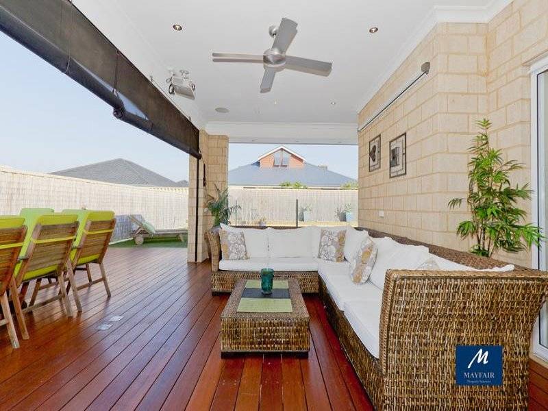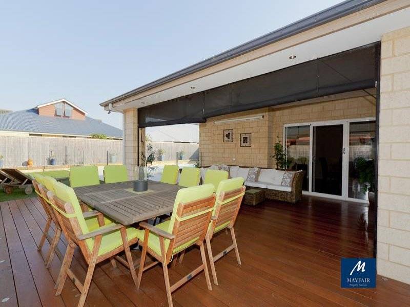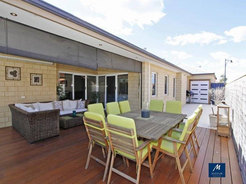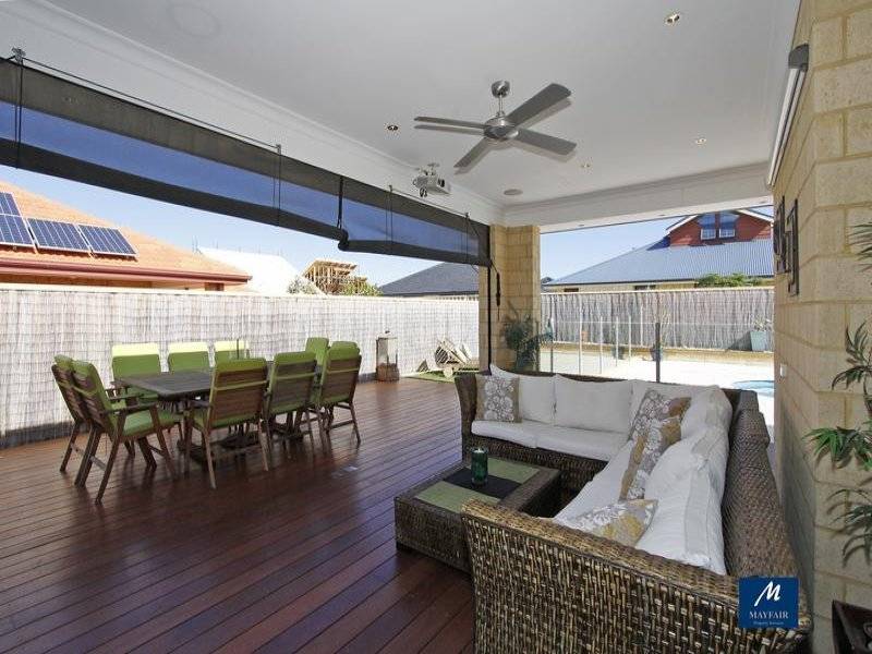 Outside the decked undercover alfresco area with downlighters, cafe blinds will have you entertaining long into the evening, overlooking the huge solar heated below ground pool with raised rockery beds and glass pool fence.